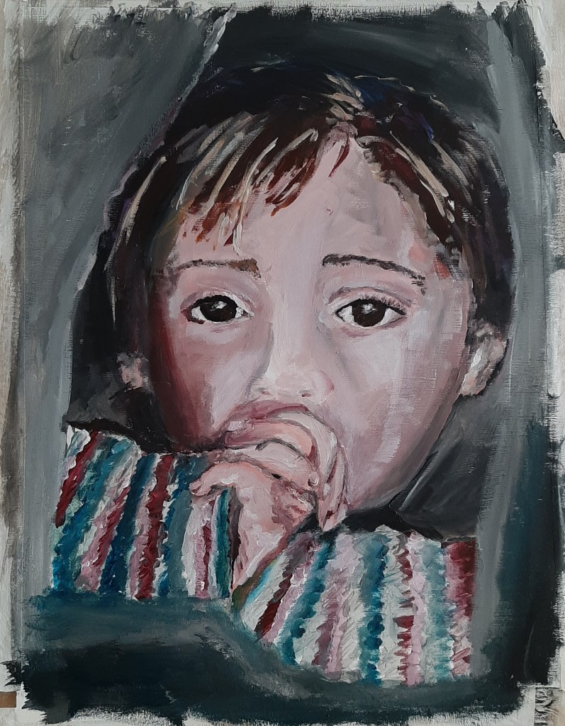 Het is meestal geen probleem om inspiratie op te doen voor het maken van een schilderij of een serie schilderijen. Inspiratie kun je overal vinden. Al enige tijd wilde ik naast volwassen vrouwen ook kinderen schilderen. Op zoek naar inspiratiebeelden kwam ik veel mooie lieve kindjes tegen. Maar dat gaf niet het gevoel waar ik naar op zoek was.