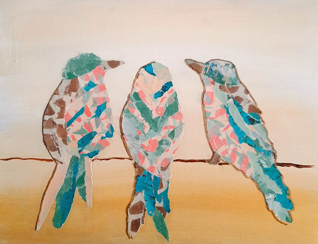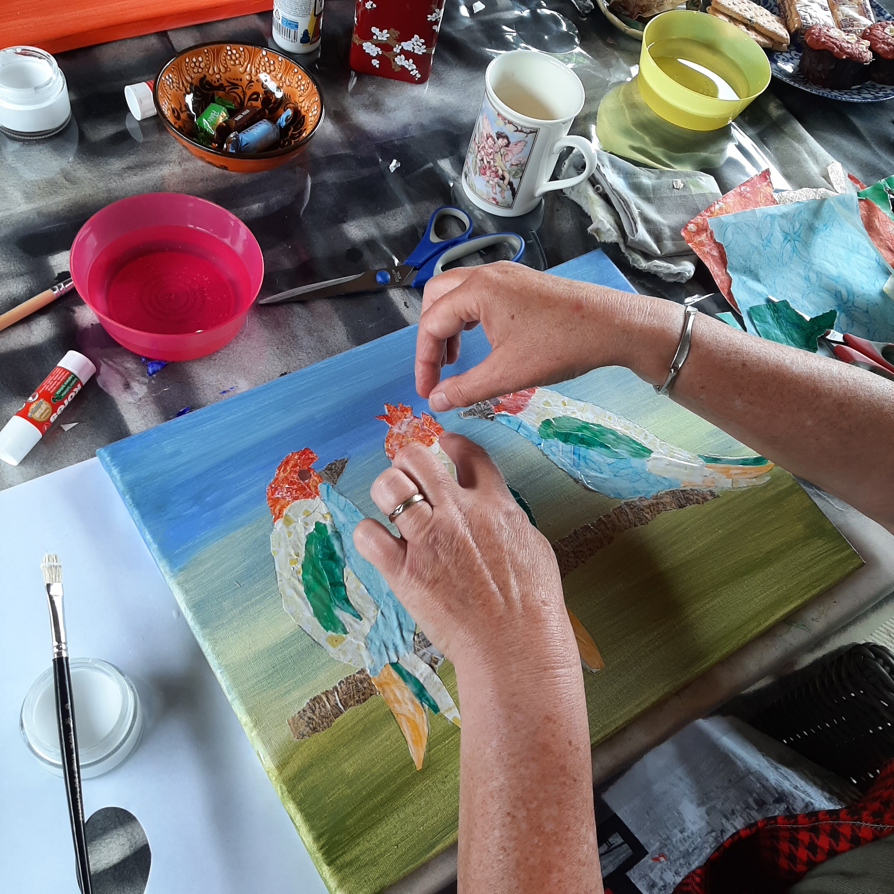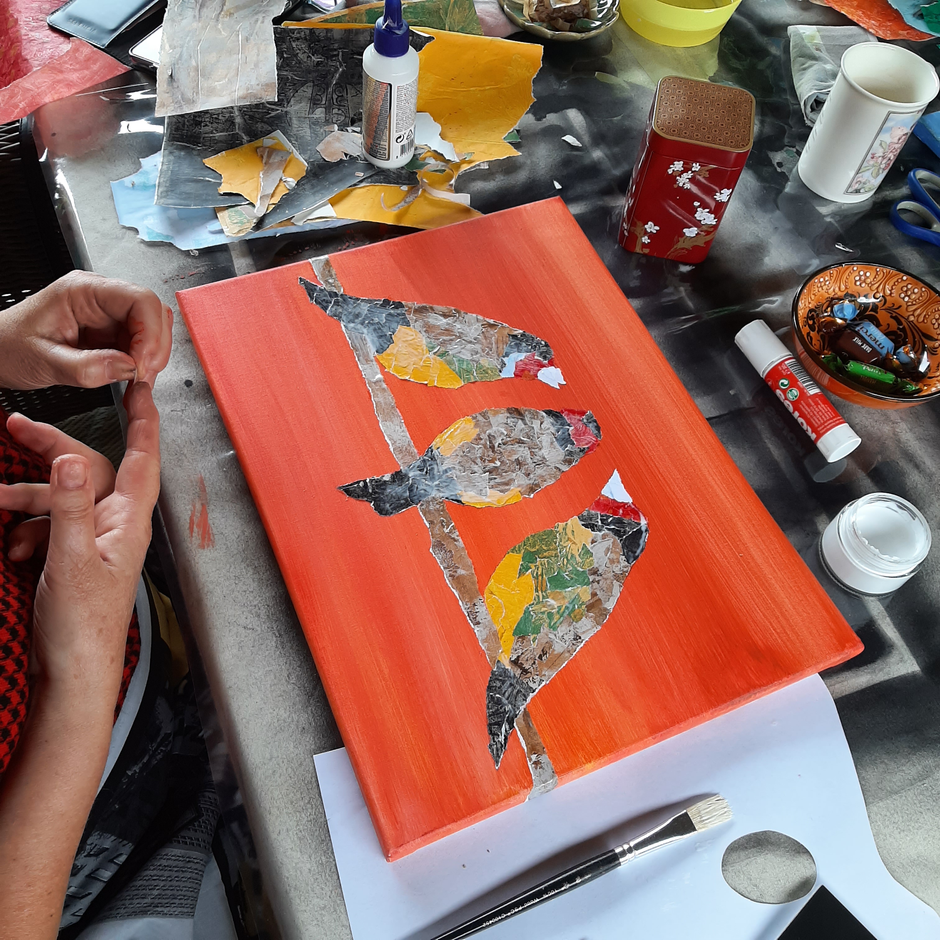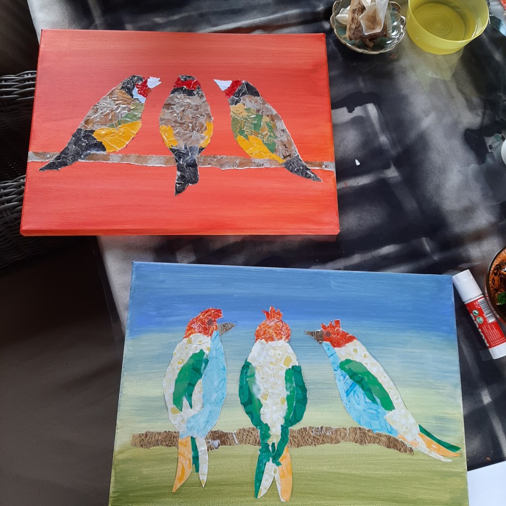 In deze workshop ga je een collage schilderij maken met het thema vogels.