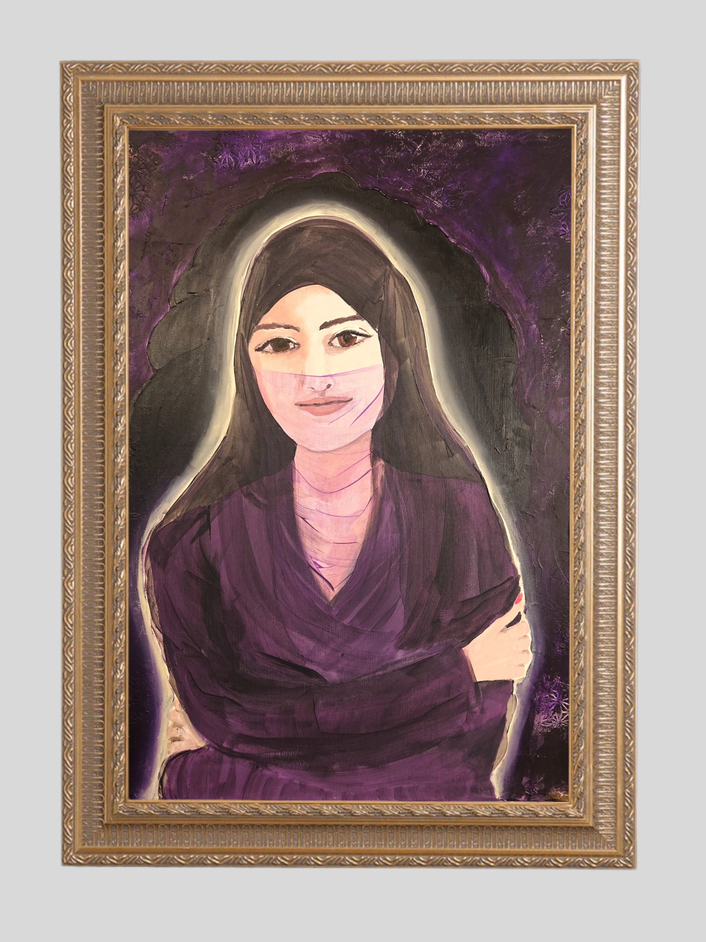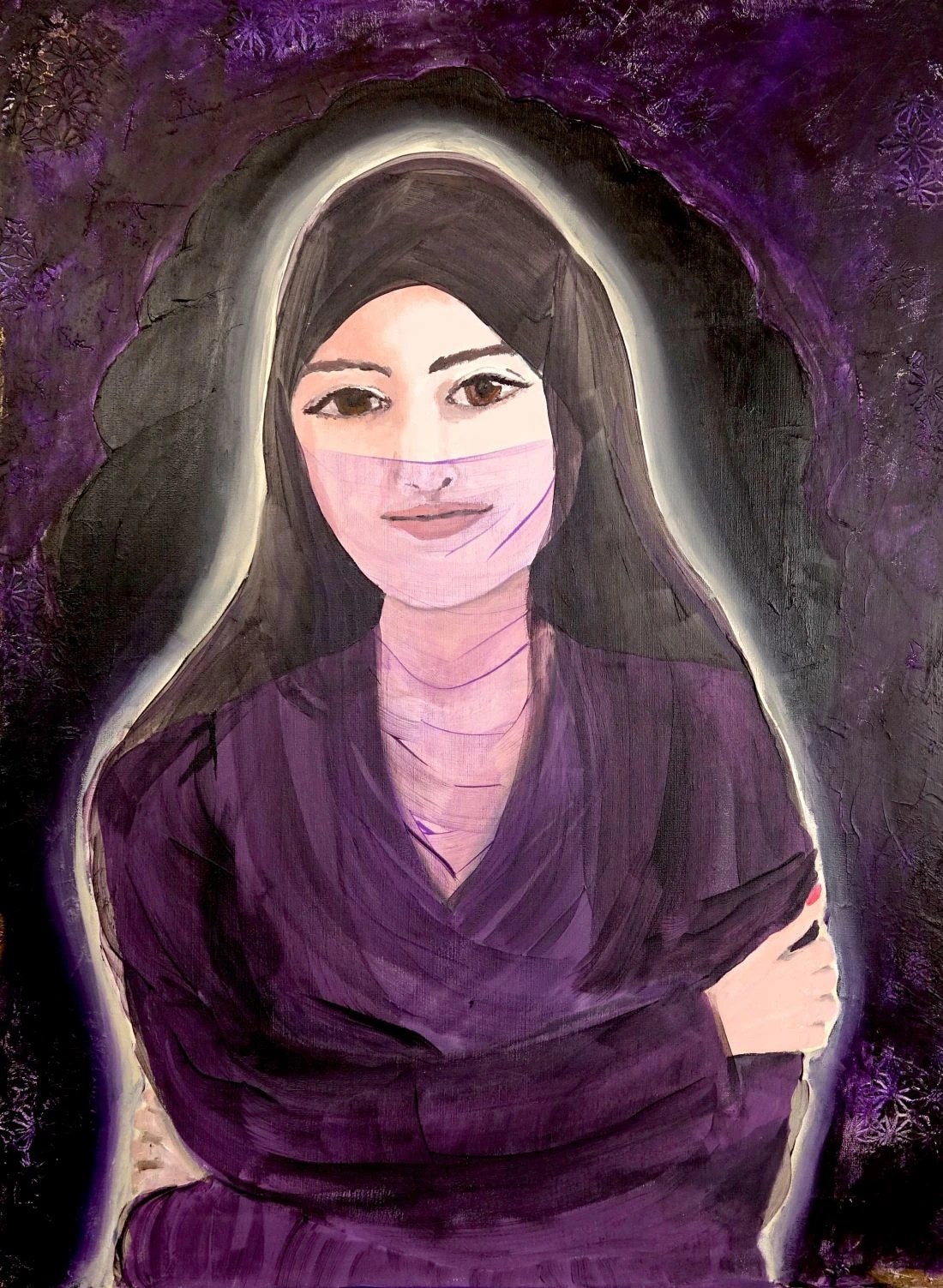 Het schilderij ‘The Woman with the Niqab’ komt uit de serie ‘Women of the world’.